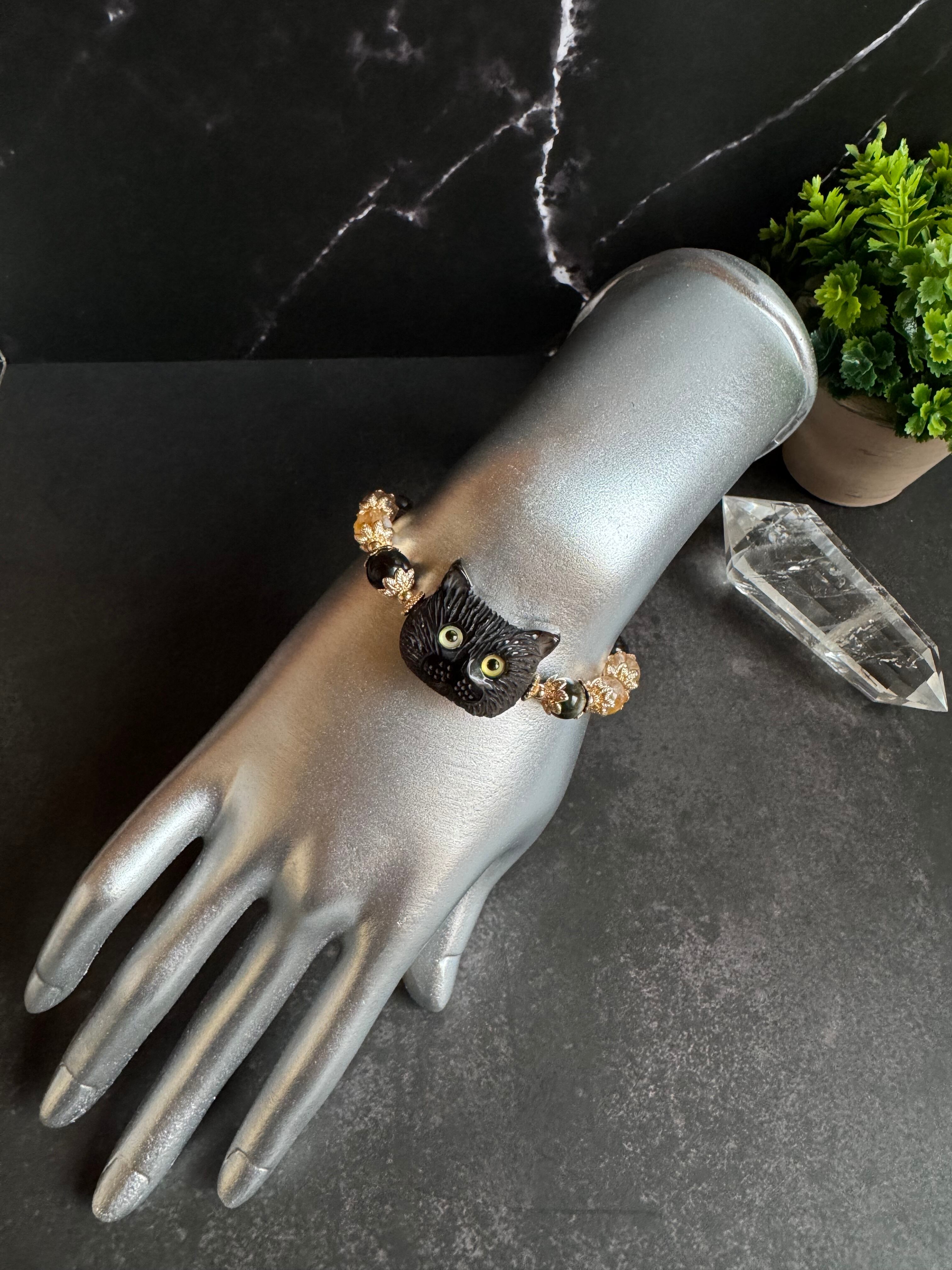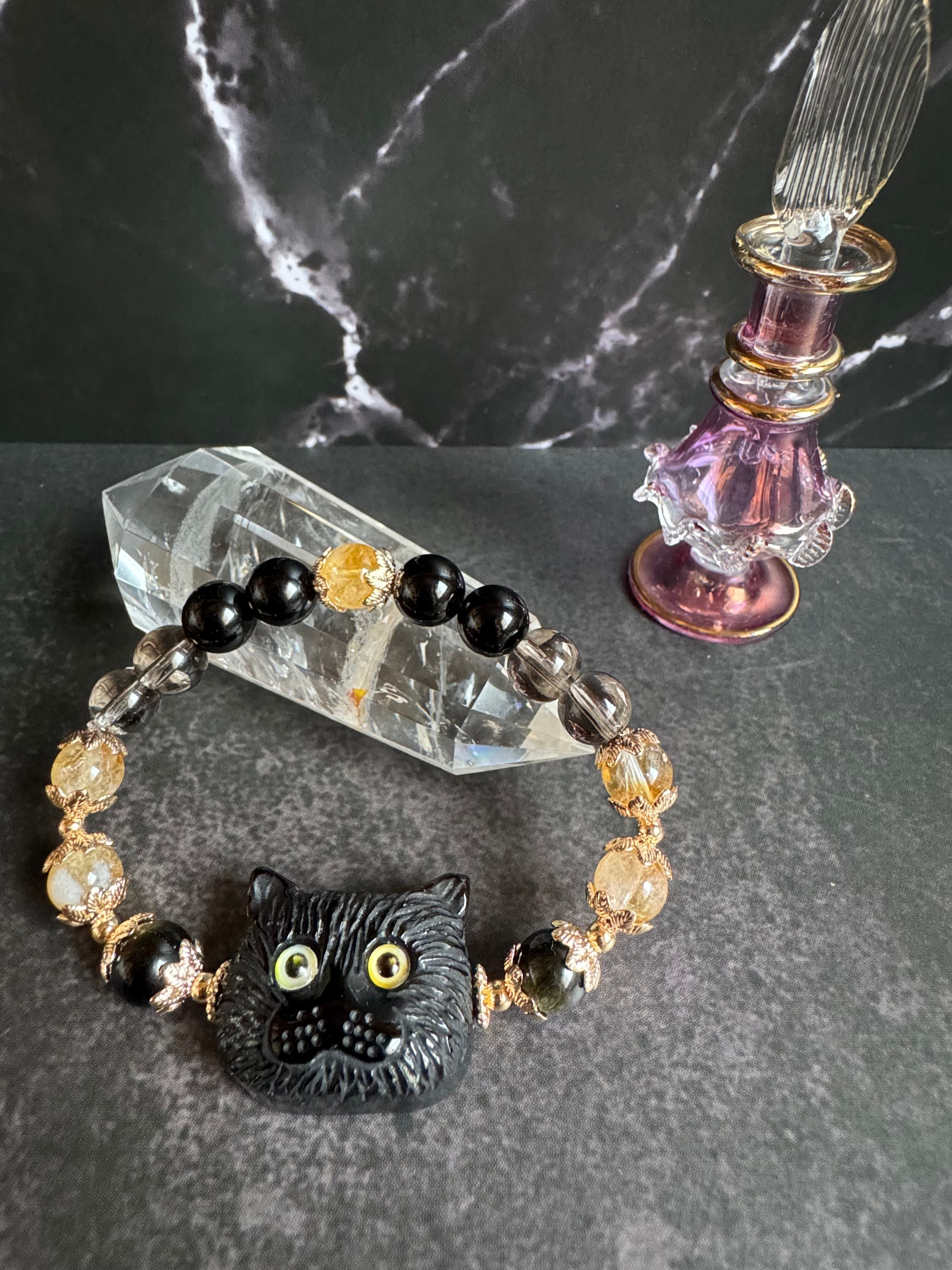 使用石:スモーキークォーツ猫/ゴールデンオブシディアン/シトリン/スモーキークォーツ