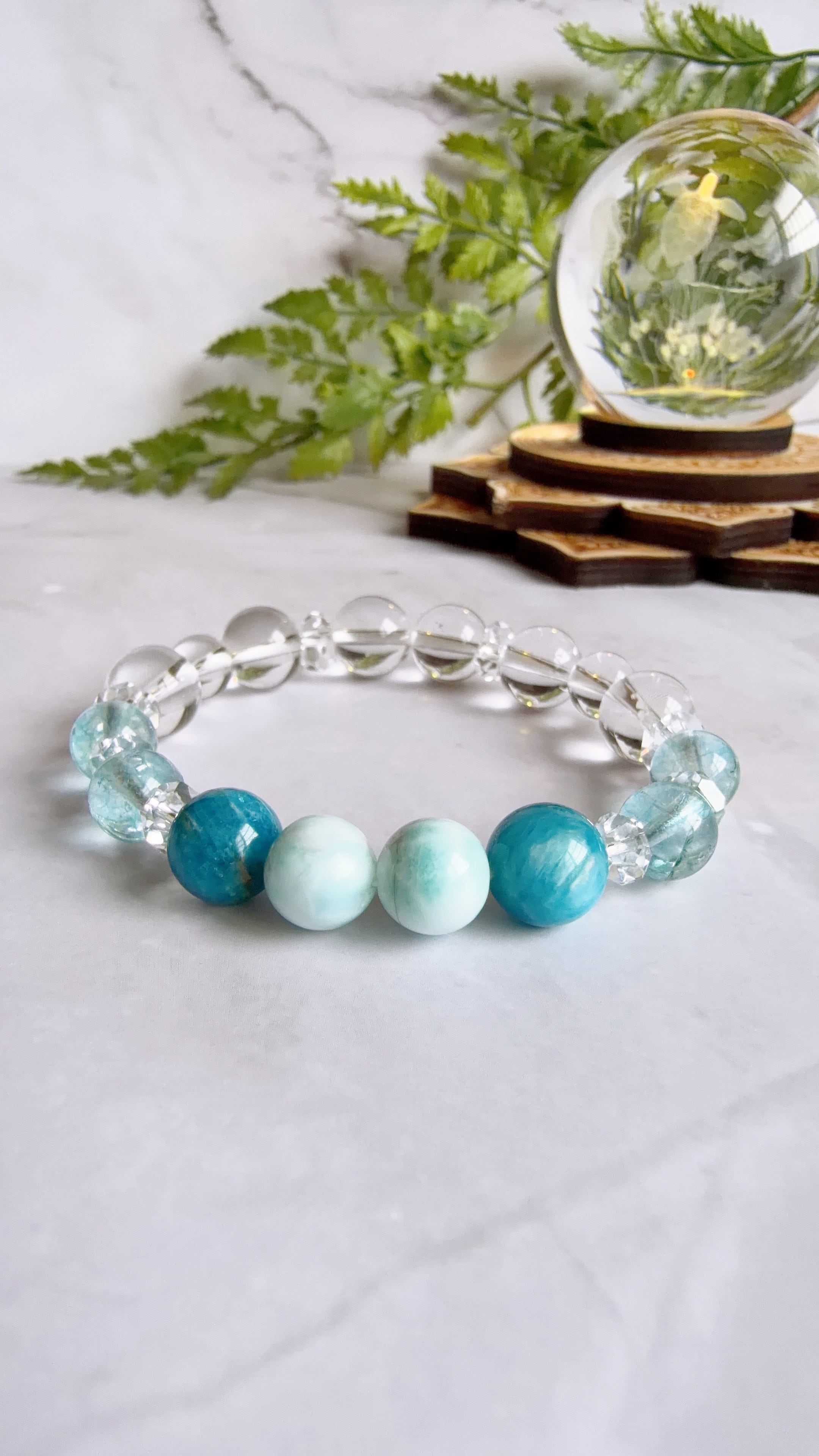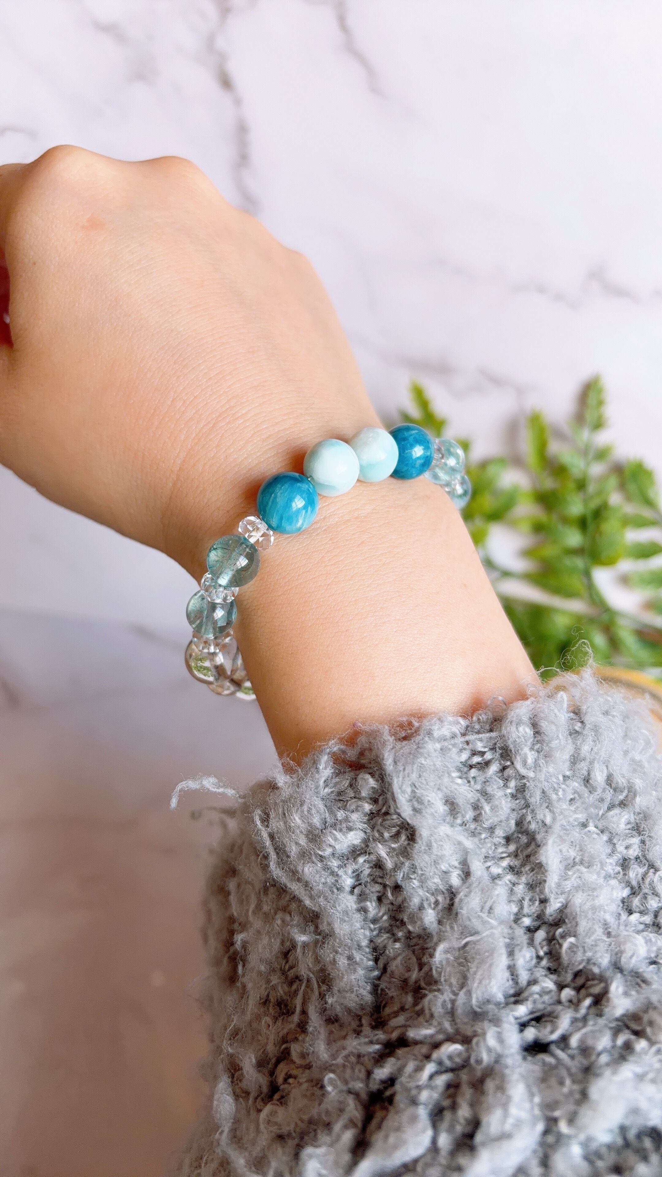 光を受けるたびにやわらかく輝き、海のような穏やかな癒しを感じさせてくれるブレスレットです。